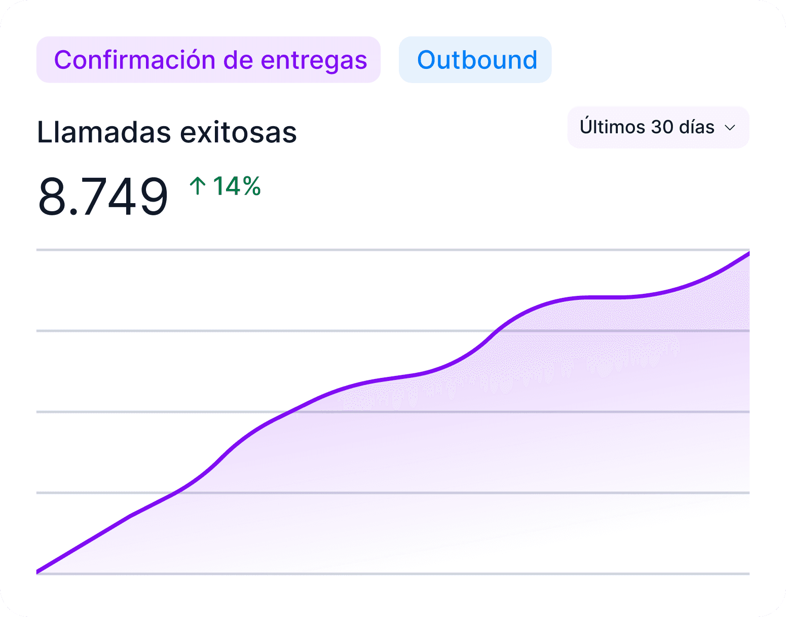 En nuestra plataforma podrás explorar datos cuantitativos y cualitativos de todas tus llamadas, con desgloses por nicho y resultado, pruebas A/B, grabaciones y el análisis inteligente de nuestro agente evaluador para que tomes decisiones con mayor precisión e impacto.
