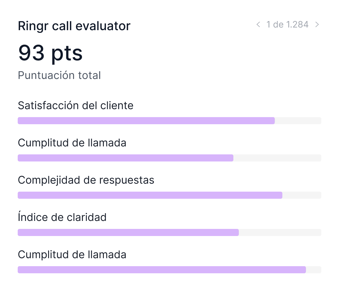 Ringr ofrece recomendaciones de mejora basadas en tus métricas y en el análisis de la información extraída de tus llamadas, en forma de insights accionables.